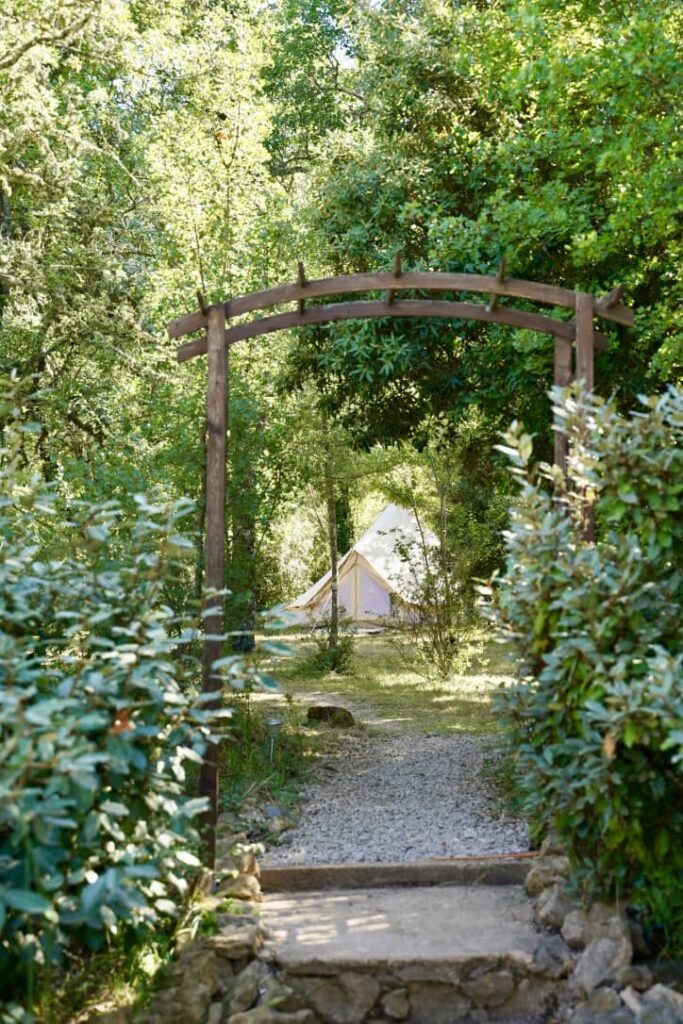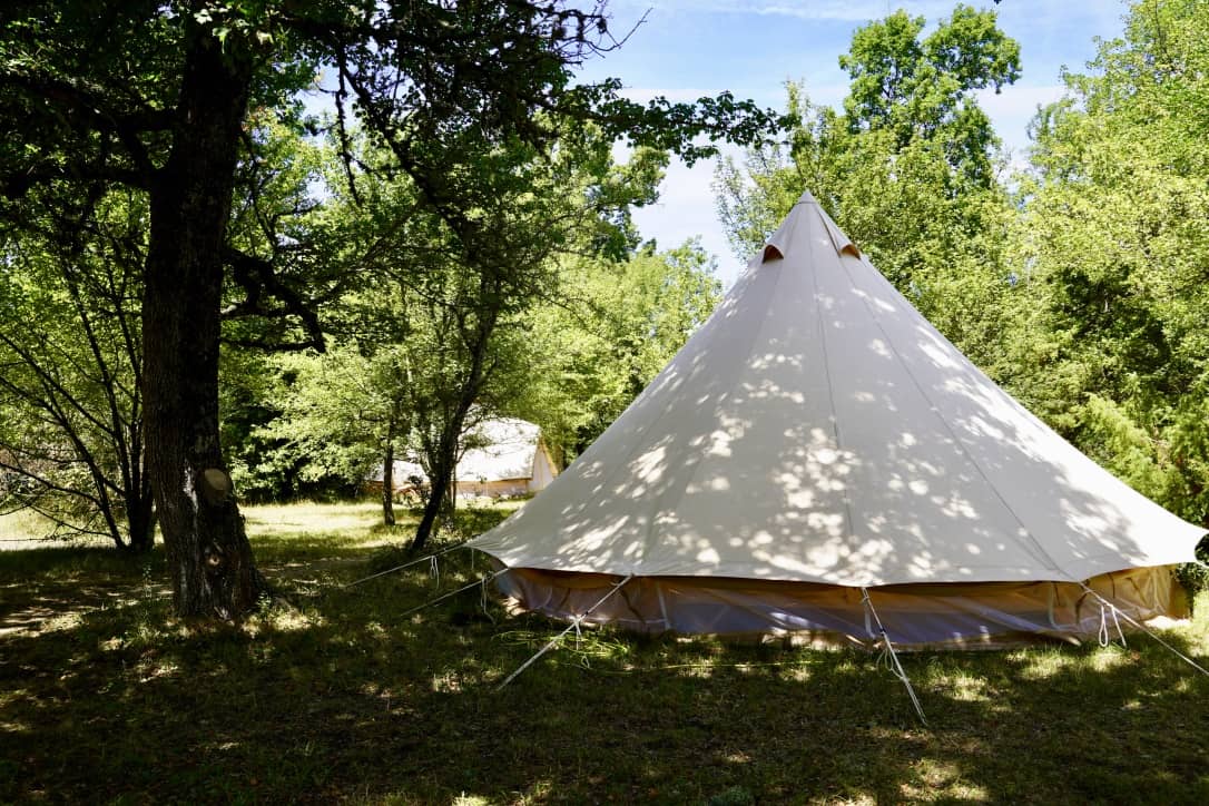 Deux tentes sahariennes de 20m2 en plein coeur de la nature qui disposent chacune de 3 couchages : cuisine partagée, salle de bain et toilettes partagés, accès à la piscine.